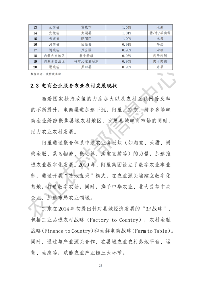 點(diǎn)擊查看完整報(bào)告:2020全國縣域數(shù)字農(nóng)業(yè)農(nóng)村電子商務(wù)發(fā)展報(bào)告.pdf